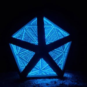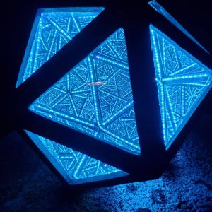 “Worm Hole” Infinity Mirror hexagon Funky Retro wall hanging light art, A psychedelic throwback!