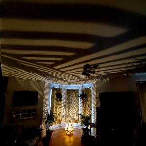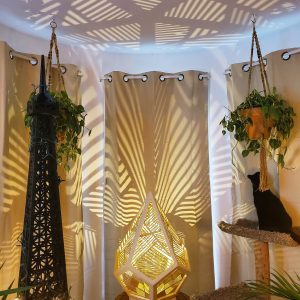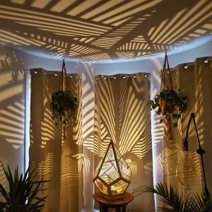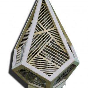 These lights are handmade to order by me so I’m completely open to colors, sizes, shadow designs etc. This design was spawned from the base of a dodecahedron then adding a spire to the top and bottom. This piece is best hanging only. Expect about 6-8 weeks for delivery. This is not a kit like some sites sell, this is a finished product.